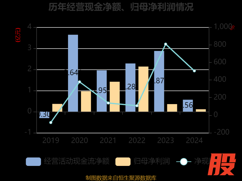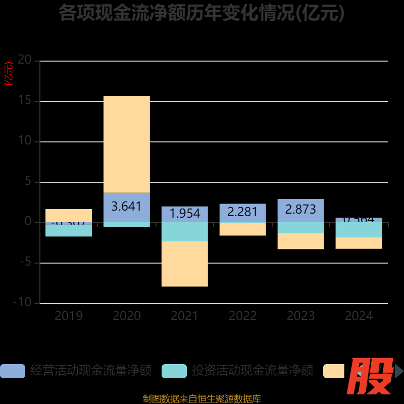 截至2024年,公司经营活动现金流净额为5638.03万元,同比下降80.37%;筹资活动现金流净额-1.45亿元,同比增加5599.81万元;投资活动现金流净额-1.85亿元,上年同期为-1.33亿元。