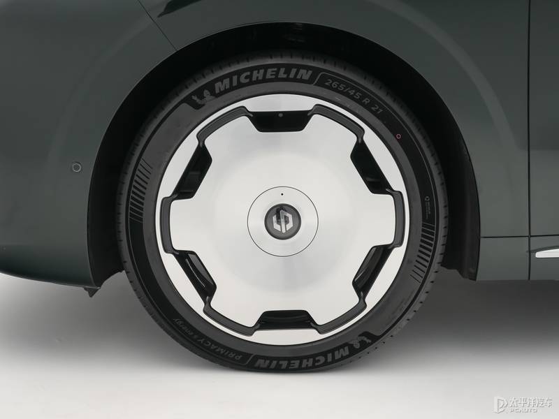 车身侧面设计简洁91快牛,搭配隐藏式车门把手.新车前后侧翼子板微宽出车体,前翼子板上镶嵌有摄像头硬件,轮拱内则搭配 21 英寸向往之境轮毂及米其林高性能静音轮胎。车身提供松谷绿、液态银、金属黑、天幕灰、光电白五种颜色选择